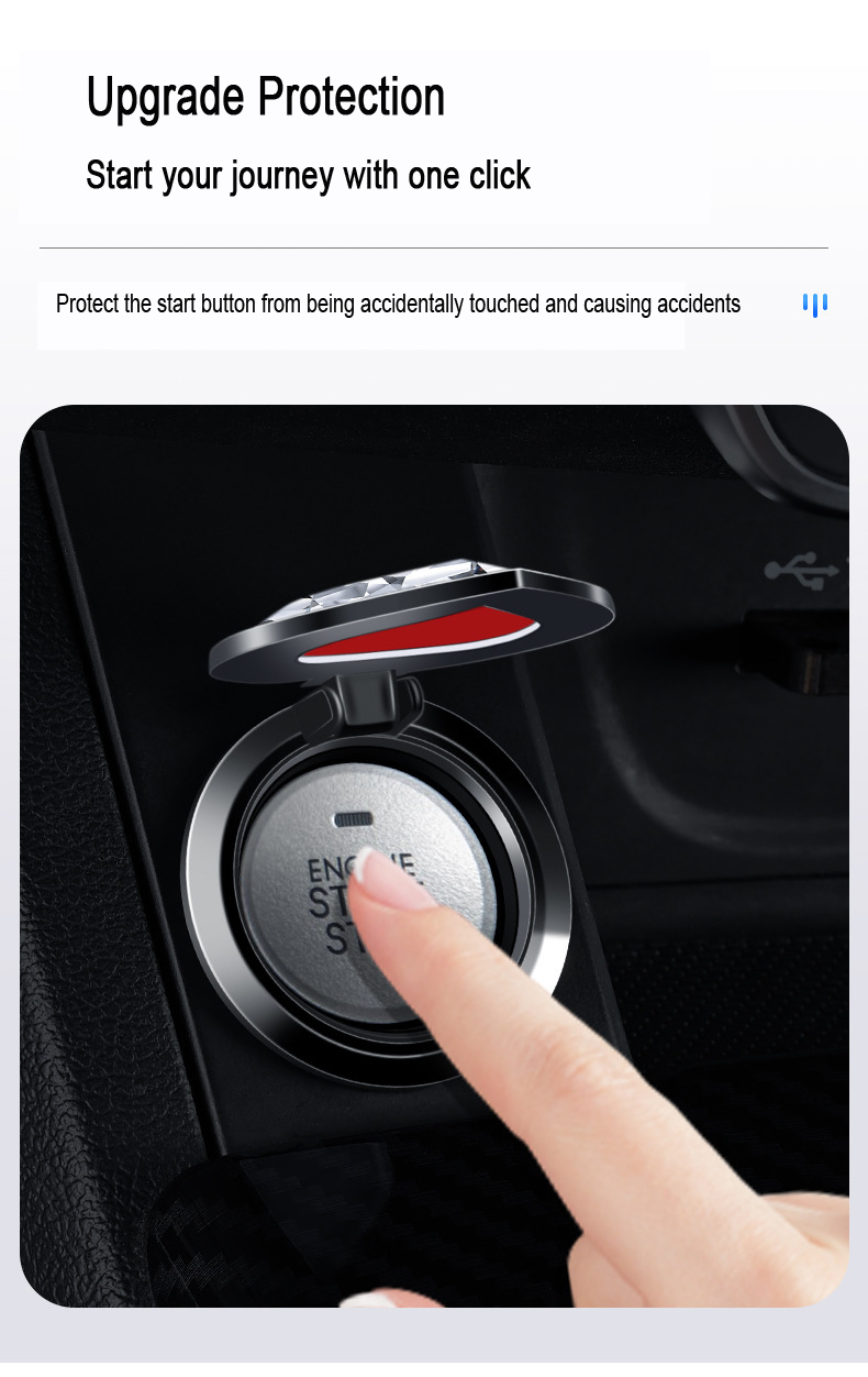 The sparkling crystal decoration upgrades your car and prevents accidents caused by accidentally touching the start button. Night light mode is more cool